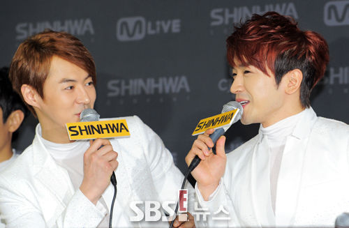 [SBS SBS연예뉴스 l 김현철 기자] 그룹 신화의 전진-이민우가 25일 오후 서울 올림픽공원 체조경기장에서 열리는 그룹 신화 14주년 콘서트 '더 리턴' 기자회견에서 질문에 답하고 있다.
