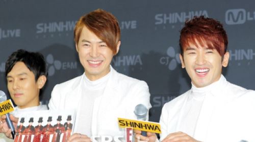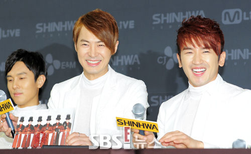 [SBS SBS연예뉴스 l 김현철 기자] 그룹 신화의 전진-이민우가 25일 오후 서울 올림픽공원 체조경기장에서 열리는 그룹 신화 14주년 콘서트 '더 리턴' 기자회견에서 환하게 웃고 있다.