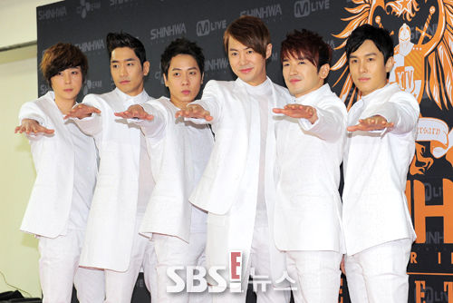 [SBS SBS연예뉴스 l 김현철 기자] 그룹 신화가 25일 오후 서울 올림픽공원 체조경기장에서 열리는 그룹 신화 14주년 콘서트 '더 리턴' 기자회견에서 포즈를 취하고 있다.