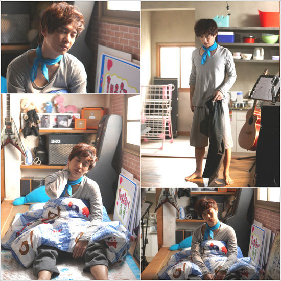 김원준은 지난 16일 KBS 별관 세트장에서 촬영이 진행된 KBS 2TV 주말드라마 '넝쿨째 굴러온 당신'(극본 박지은, 연출 김형석) 10회분 촬영에서 까치집 진 머리와 늘어진 트레이닝복을 입은 채 침대에서 막 일어난 듯한 헝클어진 모습을 소화했다.