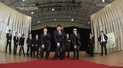 이에 '남자의 자격' 멤버들은 급하게 '단군신화'를 결성, '와일드 아이즈' 안무에 도전했다. 전현무, 양준혁, 김태원으로 결성된 '단군신화'의 개다리춤(?)을 본 이경규는 "목에 쑥과 마늘을 걸고 하라"며 이들의 무대를 혹평했다.