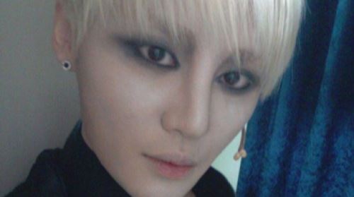 사진 속 김준수는 검게 칠한 눈화장과 창백한 얼굴 분장으로 섬뜩한 분위기를 연출하고 있다. 금발로 염색한 머리 때문인지 하얗게 분장한 얼굴이 더욱 창백해 보인다.