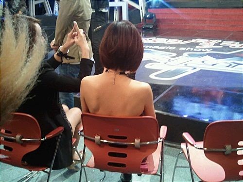 사진을 본 네티즌은 "정말 교묘하게 가려졌다", "등이 어쩜 저리 예쁠까", "뒷 좌석에 앉아 계셨던 분 코피 쏟았을 듯" 등의 반응을 보였다.