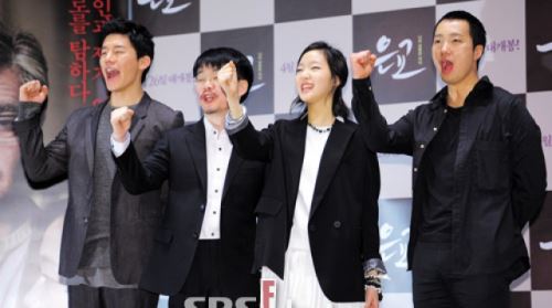 [SBS SBS연예뉴스 l 김현철 기자] 배우 김무열 정지우감독 김고은 박해일이 27일 오전 서울 광진구 자양동 롯데 시네마에서 열린 영화 '은교' 제작보고회에서 포즈를 취하고 있다.