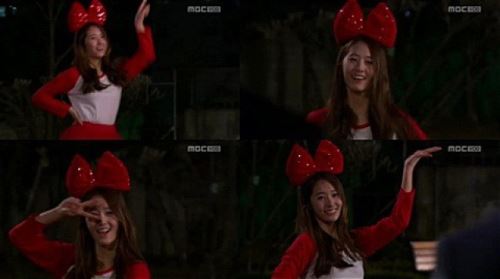 사진 속 크리스탈은 MBC 일일시트콤 '하이킥3-짧은 다리의 역습(이하 하이킥3)'에 출연 중인 모습. 커다란 리본이 달린 머리띠를 착용하고 브이를 그리는 등 깜찍한 포즈를 연달아 취해 보이고 있다.
