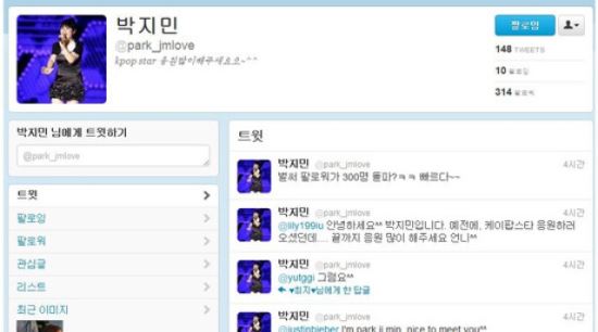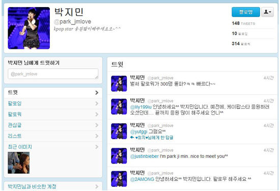 이와 관련 박지민의 인기를 반영하듯 박지민의 사칭 트위터가 개설돼 버젓이 운영되고 있다.