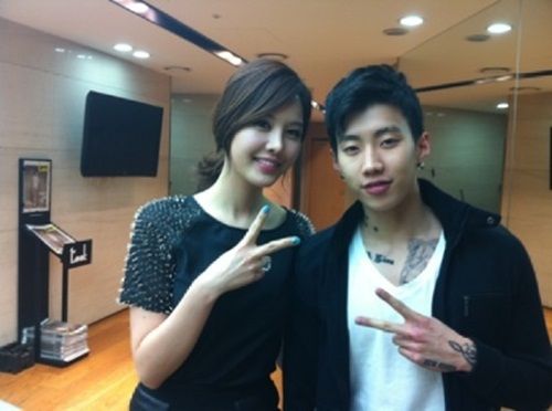 박은지는 29일 오전 자신의 트위터에 "엠넷 '비틀즈코드' 녹화를 함께 한 재범씨"라는 글과 함께 사진을 게재했다.