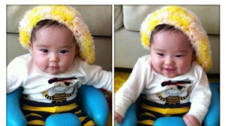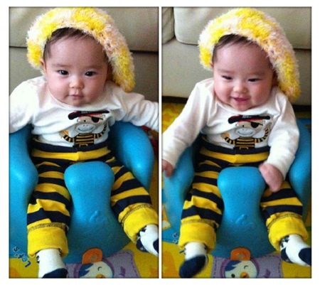 사진 속에는 딸 노엘 양이 털모자를 쓰고 의자에 앉아 있다. 꿀벌 무늬의 바지를 입고 똘망똘망한 눈으로 카메라를 응시하고 있어 귀여운 모습이다. 방긋 웃고 있는 노엘 양은 통통한 볼살과 뚜렷한 이목구비로 벌써부터 미모를 뽐내 보는 이들의 마음을 녹였다.