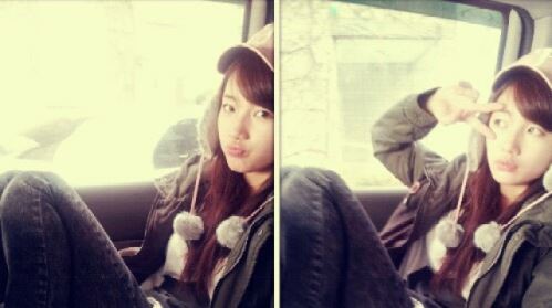 걸그룹 미쓰에이(miss A) 멤버 수지가 사랑스러운 애교샷을 공개했다.
