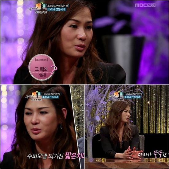 슈퍼모델 출신 방송인 이소라가 데뷔 전 자신의 다리가 뚱뚱한 줄 알았다는 망언을 했다.