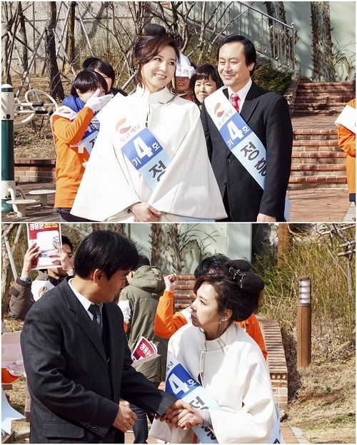 새하얀 선녀복과 꽃빵 머리로 하늘나라 선녀님 스타일로 완벽 변신한 심혜진, 거기에 선거 후보의 기호와 이름이 적혀있는 띠로 선거 유세 현장의 자원봉사 스타일을 100% 완성시킨 그녀의 모습이 눈길을 끈다. 특히, 선거 유세 현장 속 환한 미소와 함께 진지한 표정으로 사람들과 악수를 하고 있는 모습은 지상세계의 선거 유세 현장까지 접수한 선녀 왕모의 포스에 더욱 이목을 집중시킨다.