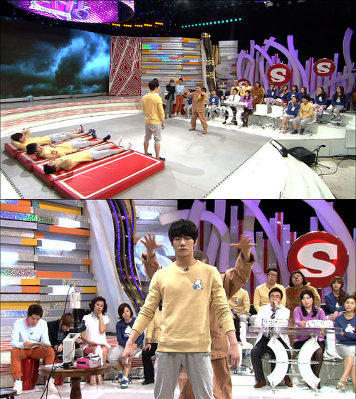 영화속에서 무림의 고수들이 선보였던 장풍을 쏘는 '장풍 인간'. 실제 스튜디오에 출연한 주인공은 손 하나 까딱하지 않고 건장한 체대생과 2AM의 조권, 창민 등을 뒤로 넘어지게 했다.