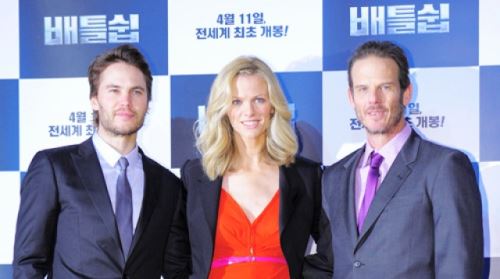 [SBS SBS연예뉴스 ㅣ 김현철 기자] 배우 테일러 키취-브루클린 데커-피터 버그감독이 5일 오후 서울 왕십리 CGV에서 열린 영화 '배틀쉽' 시사회에서 포즈를 취하고 있다.