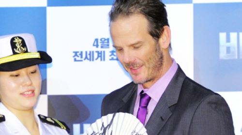 [SBS SBS연예뉴스 ㅣ 김현철 기자] 피터버그 감독이 5일 오후 서울 왕십리 CGV에서 열린 영화 '배틀쉽' 시사회에서 부채를 받고 기뻐하고 있다.
