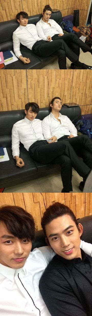 그룹 2AM 멤버 임슬옹이 그룹 2PM 멤버 택연과 함께 찍은 '훈남' 사진을 공개했다.