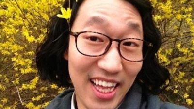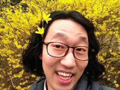 사진 속 김경진은 노란 개나리꽃을 머리에 꽂고 있다. 김경진은 만개한 꽃들 앞에서 행복한 미소를 지어 보이고 있지만, 게슴스레하게 뜬 눈과 이마에 잡힌 주름이 보는 이들의 웃음을 자아낸다.
