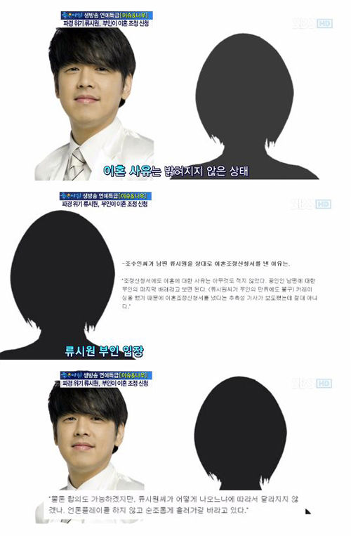 10일 오전 방송된 SBS '배기완 최영아 조형기의 좋은 아침'에선 파경 위기를 맞은 류시원에 관한 내용이 다뤄졌다. 이날 방송에서 조 씨의 법률대리인은 제작진과의 서면 인터뷰를 통해 조 씨의 입장을 전했다.