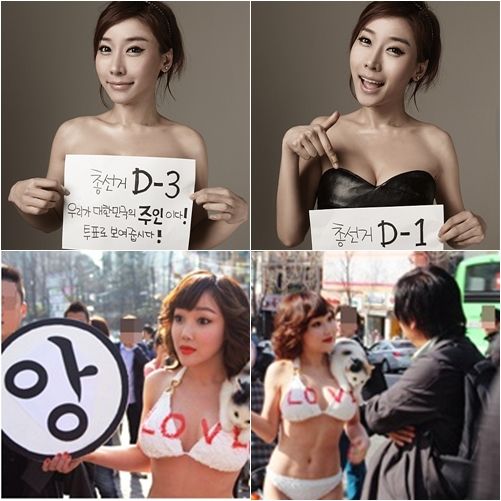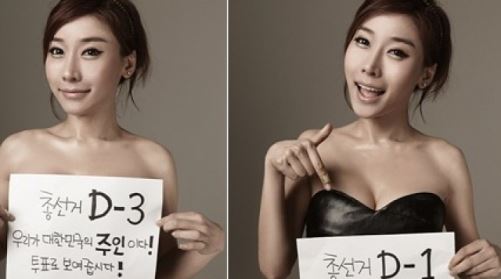 제19대 국회의원 총선거를 앞두고 연예인과 유명인들이 적극적으로 투표를 독려하고 나선 가운데 낸시랭, 곽현화, 엄다혜가 투표율을 놓고 경쟁적으로 노출 공약을 펼쳐 이목을 집중시켰다.