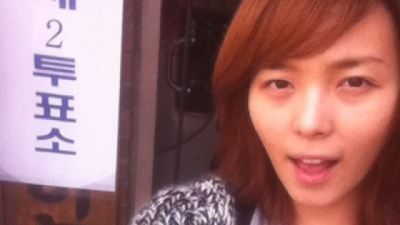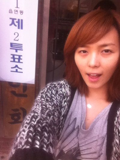 선예는 11일 오후 자신의 트위터에 "기분 좋은 날씨에 기분 좋게 한 표" 라는 글과 함께 사진을 게재했다.