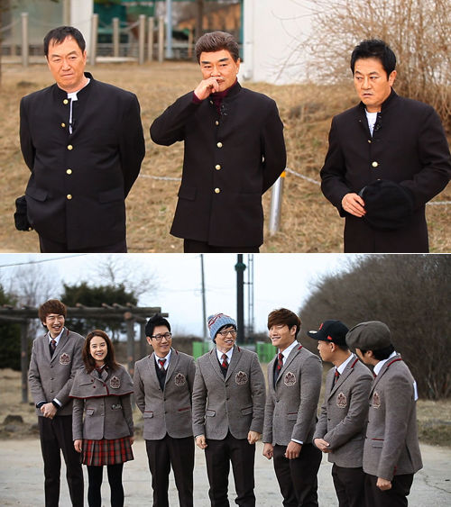 런닝맨을 비롯해 세 게스트는 모두 교복을 입은 채로 녹화를 진행했다. 이에 이덕화는 “교장 역할을 맡을 나이에 이렇게 교복을 입고 예능 프로그램에 출연하게 돼 신기하다”며 호탕하게 웃었고, 박준규와 박상면 역시 어색한 표정을 지으면서도 특유의 유머를 선사했다.