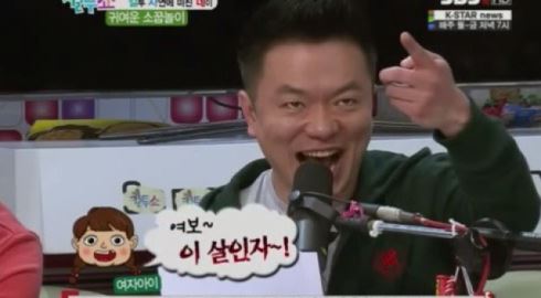 하지만 여자아이는 "으악!" 비명을 지르며 장단을 맞춰 죽는 시늉을 한 남자아이를 향해 "여보~ 이 살인자~!" 라며 돌변하여 사연남에게 소리를 지르는 것이었다.