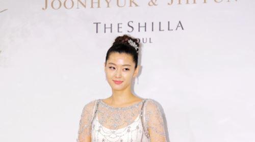 [SBS SBS연예뉴스 l 김현철 기자] 배우 전지현이 13일 오후 서울 장충동 신라호텔에서 열린 최준혁씨와 결혼식 전 기자회견에서 포즈를 취하고 있다.
