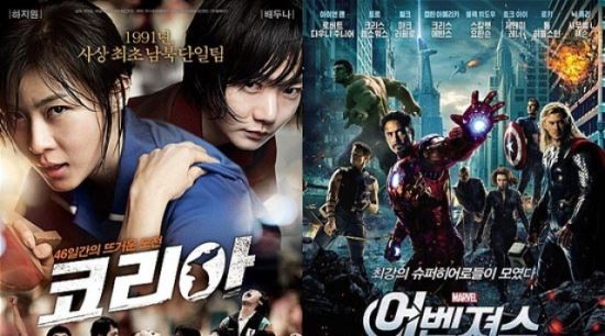 1991년 결성됐던 사상 최초 남북 단일 탁구 국가대표팀의 실화를 영화화한 작품 '코리아'와 미국을 대표하는 마블 슈퍼히어로들이 총출동하는 영화 '어벤저스'가 그 주인공.