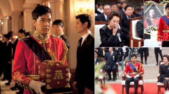 지난 12일 방송된 MBC 수목드라마 '더킹 투하츠' 7, 8회 분에서는 이성민이 윤제문에 의해 안타까운 죽음을 맞이한 후 왕위를 물려받은 이승기가 왕권의 상징인 옥새를 전달받는 장면과 국왕 영결식에 참석한 장면이 담겨졌다.