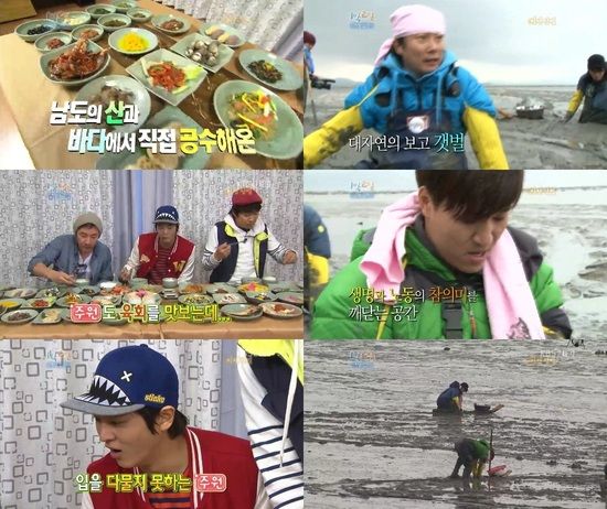 베이스캠프에 모인 멤버들, 김종민과 이수근 성시경 김승우가 함께 '꼬막 캐기' 벌칙을 떠난 이후 태웅 팀은 따뜻한 방안에서 45첩남도한정식을 받고 기쁨을 감추지 못했다. 맛의 1번지로 유명한 남도의 풍성한 한정식의 매력에 흠뻑 빠진 3인방. 환상적인 맛에 취해 먹는 데 열중하는 세 사람과 달리 패자팀에게는 초라한 삼각김밥과 갯벌이 기다리고 있었다.