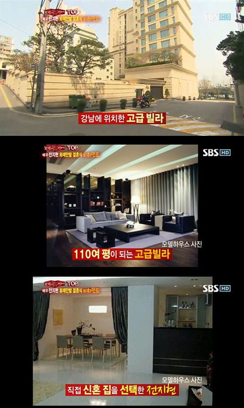 이날 방송에서 전지현의 신혼집은 서울 강남에 위치한 고급빌라로, 매매가가 수십억원을 호가하는 것으로 전해졌다. 특히 전지현이 110여 평 규모의 해당빌라를 보안과 여러 가지 좋은 여건 때문에 직접 선택했다고 전했다.