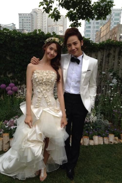 사진 속 두 사람은 드라마의 배경이 되는 화이트 가든을 배경에서 각각 웨딩드레스와 턱시도를 입은 모습으로 서있다. 특히 장근석은 윤아의 어깨에 손을 올리고 다정한 포즈를 취하고 있어 눈길을 끈다.