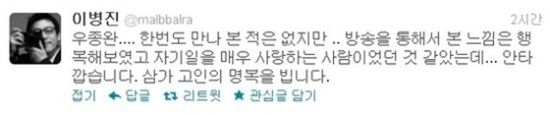 이병진 "우종완, 만난 적 없지만..행복해보였는데.." 애도