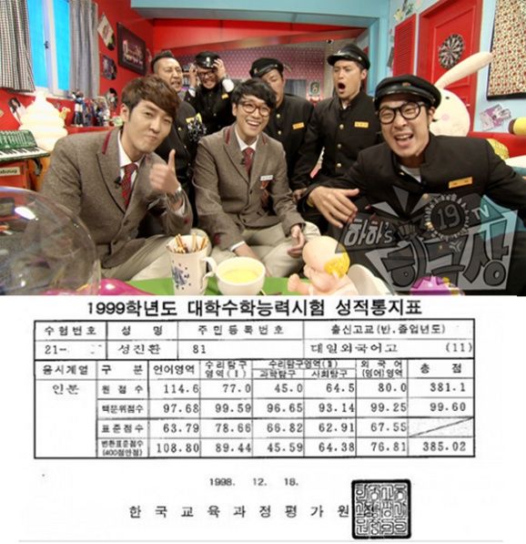 특히 성진환은 상위 1%에 해당되는 대학수학능력시험 성적표를 공개해서 출연진을 경악케 했다. 더불어 같은 멤버 인호진은 '수'로 가득찬 성적표를 공개해 다시금 스튜디오를 놀라게 했다.