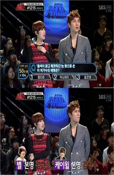 9일 방송된 SBS '세대공감-1억퀴즈쇼'(이하 1억퀴즈쇼)에는 별과 케이윌이 출연하여 개그맨 황현희, 홍현희와 함께 퀴즈 맞대결을 펼쳤다.