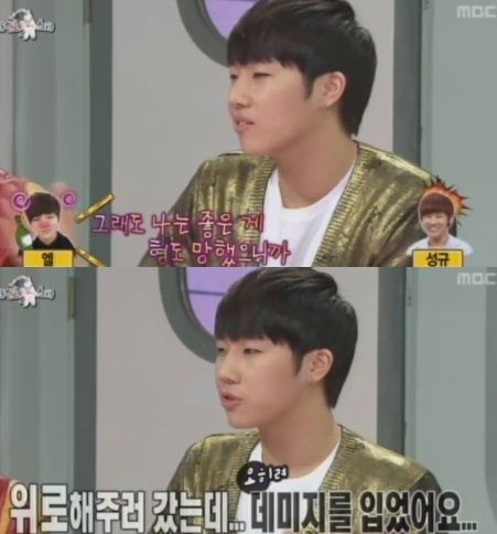 이어 성규는 “멤버 엘이 시트콤 '엄마가 뭐길래'가 폐지된 후 속상한 마음에 술을 마시고 있었다”며 함께 술을 마셨는데, 엘이 '그래도 같이 망해서 좋다'는 식으로 말해 충격을 받았다고 덧붙였다.