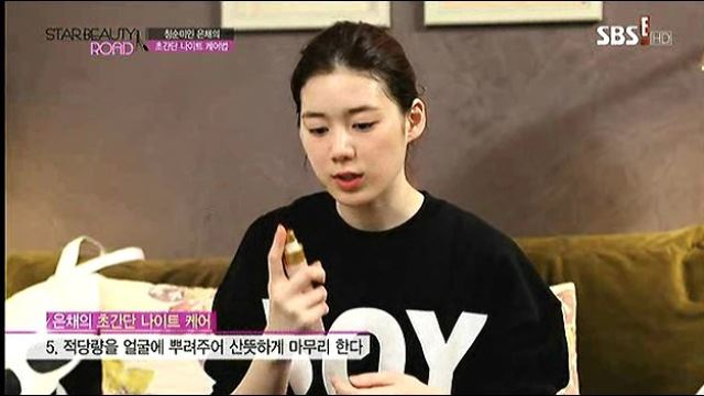 마지막으로 정은채는 기초 마지막 단계로 미스트를 뿌리고 흡수시킨 뒤 잠자리에 든다고 전했다.