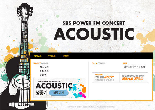 오는 14, 15일 서울 양천구 목동 SBS 사옥 13층 공개홀에서 열리는 SBS 파워FM(107.7Mhz) 콘서트 '어쿠스틱'이 유튜브로 생중계 된다.