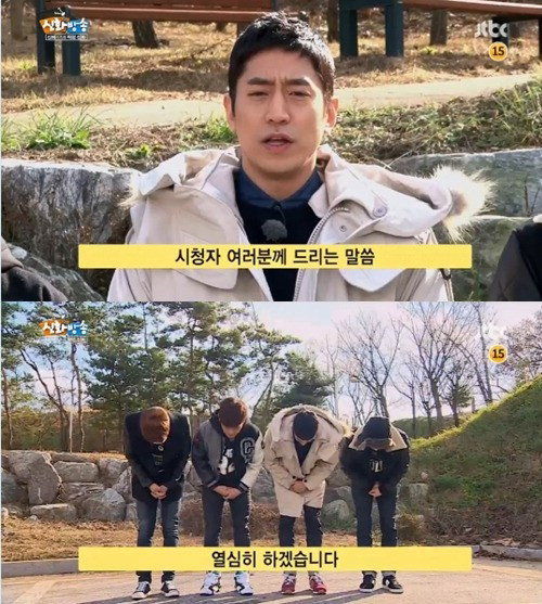 지난 8일 방송된 JTBC '신화방송'에서 그룹 신화는 오프닝에 앞서 시청자들에게 정중하게 사과했다.