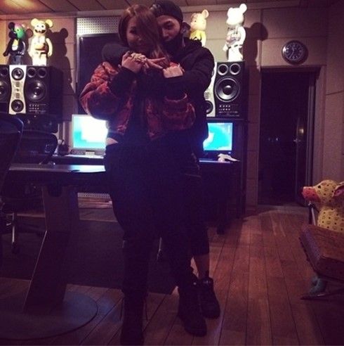 공개된 사진 속에는 태양이 씨엘을 등 뒤에서 백허그를 하는 모습이 담겨있다.