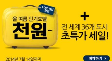 익스피디아 천원, "올 여름 세계 8개 인기호텔 천원에 선착순 한정 판매"