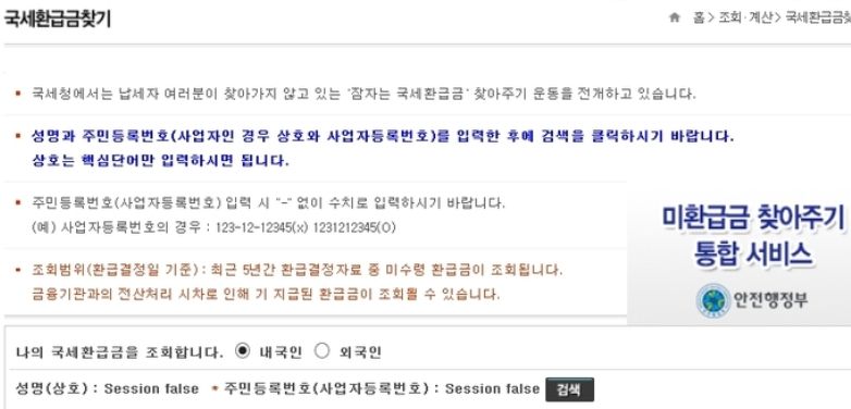 한편 국세청은 홈페이지(www.nts.go.kr)에 간단하게 자신이 환급받을 국세가 있는지를 확인할 수 있는 '국세환급금찾기' 코너를 운영하고 있으며, 이와 별도로 안전행정부는 민원24 홈페이지(www.minwon.go.kr)에 국세는 물론 지방세 미환급금을 조회할 수 있는 코너를 운영하고 있다.