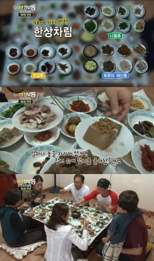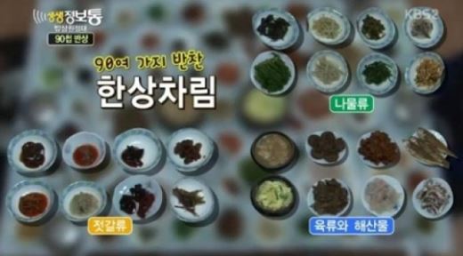 생생정보통에 등장한 순창 90첩 반상은 6인 이상만 맛볼 수 있으며, 접시 위에 접시를 쌓아놓은 모습이 놀라움을 자아냈다.