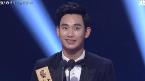 백상예술대상 김수현 '인기상' 수상소감 "천송이 씨 사랑한다" 화제