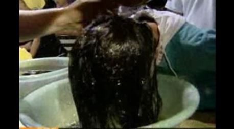 창포물 머리 감기