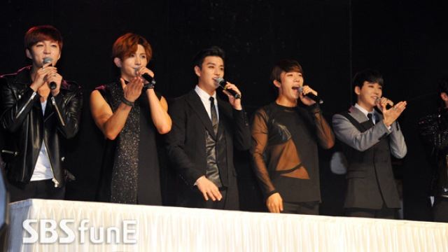[SBS연예뉴스 | 김현철 기자] 그룹 유키스가 2일 오후 서울 홍대 브이홀에서 열린 미니앨범 '끼부리지마' 쇼케이스에서 인사를 하고 있다.
