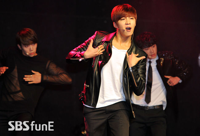 [SBS연예뉴스 | 김현철 기자] 그룹 유키스가 2일 오후 서울 홍대 브이홀에서 열린 미니앨범 '끼부리지마' 쇼케이스에서 멋진 무대를 보여주고 있다.