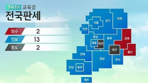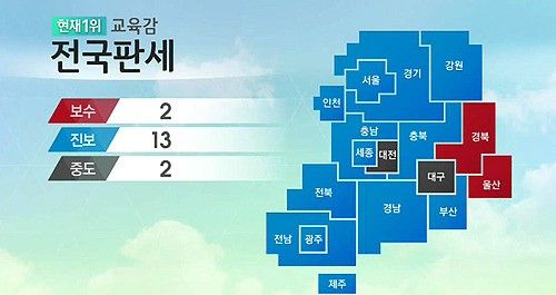 6.4 지방선거에서 교육감 진보 압승에 관심이 모아지고 있다.