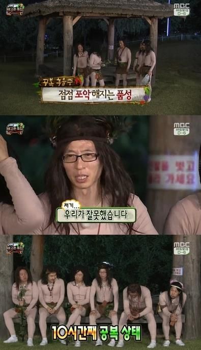 10시간의 공복을 겪은 유재석은 "우리가 잘못했다"고 호소하는 지경에 이르러 웃음을 자아냈다.