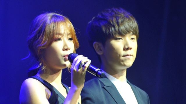 [SBS연예뉴스 | 김현철 기자] MC 소유-정기고가 9일 오전 서울 광진구 광장동 악스코리아에서 열린 보이프렌드 'OBSESSION PREMIERE SHOWCASE'에서 사회를 보고 있다.