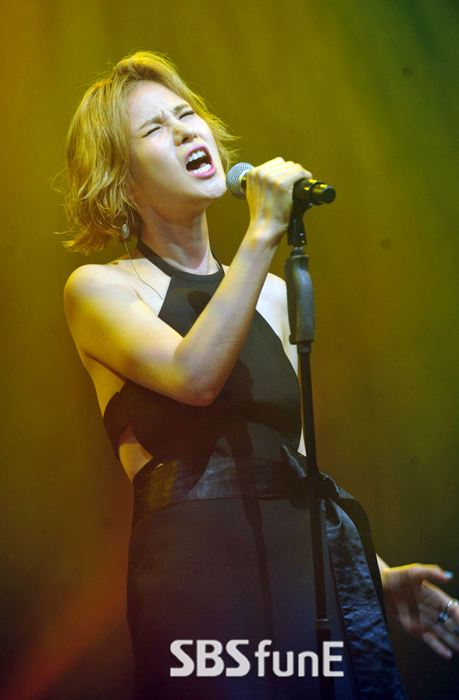 [SBS연예뉴스 | 김현철 기자] 가수 거미가 9일 오후 서울 청담동 일지아트홀에서 열린 '사랑했으니..됐어' 쇼케이스에서 멋진 무대를 보여주고 있다.